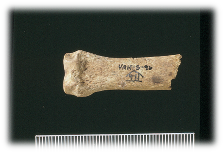 شکل. 2. بر بدنه ی این استخوان خوک آبی آثار بریدگی هایی که با استفاده از ادوات سنگی ایجاد شده، مشخص است، که نمایانگر مورد استفاده قرار گرفتن توسط یک انسان است. استفاده س فصلی از منابع دریایی (خوک های آبی، دلفین ها، ماهی ها و نرم تنان) در بین نئاندرتال ها، غیرمنتظره است.